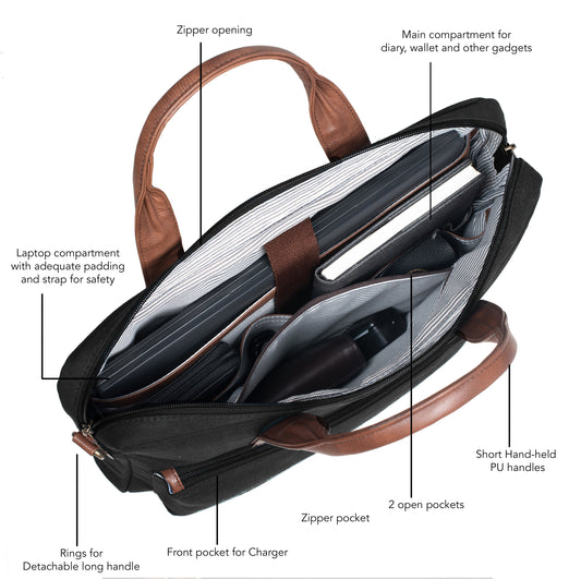 Canvas with Faux Leather Laptop Bag - Personalised